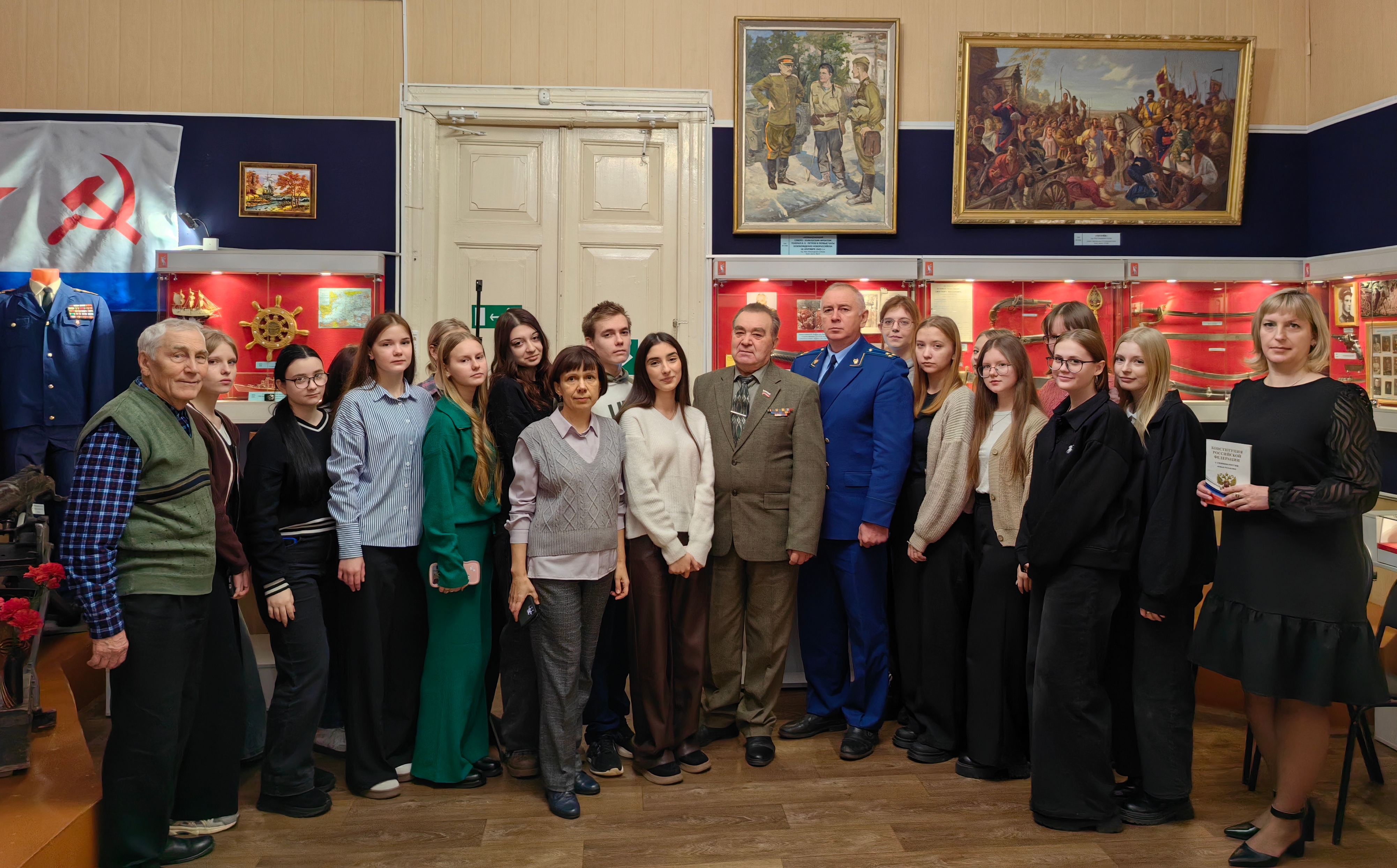 На мероприятии присутствовали студенты 2 курса (рук. Головачёва Н.А.) Трубчевского профессионально-педагогического колледжа и почётные гости: прокурор Трубчевского района Поденок Александр Сергеевич, председатель Трубчевского Совета ветеранов, полковник запаса Балахонов Михаил Петрович и ответственный секретарь Трубчевского Совета ветеранов Шапошников Николай Савельевич.