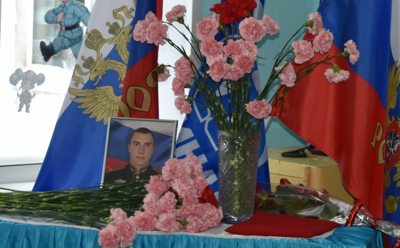 Память Героя СВО почтили минутой молчания и возложили живые цветы к доске памяти.