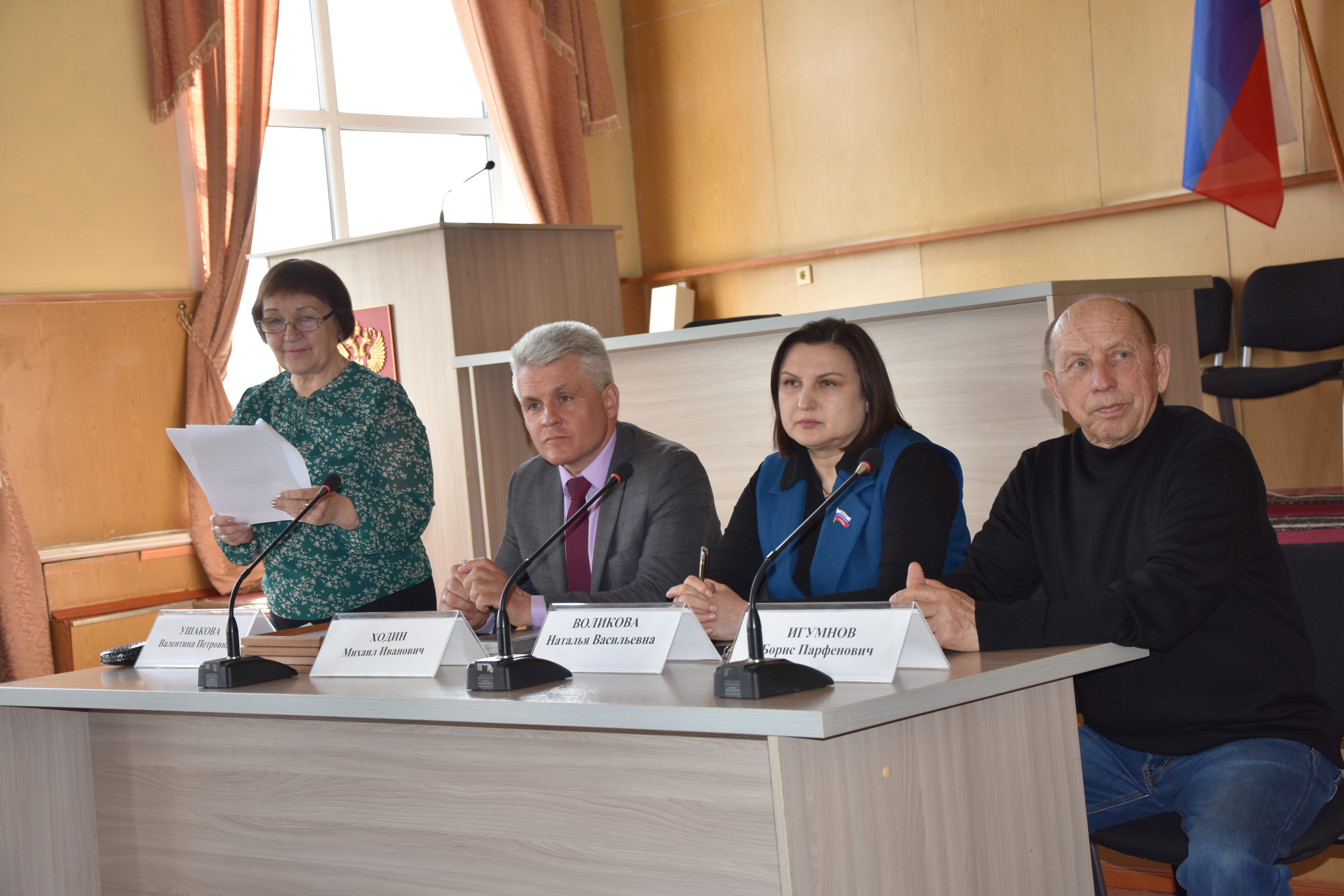 Михаил Иванович Ходин, Наталья Васильевна Воликова поблагодарили Валентину Петровну Ушакову и всех членов районного Совета ветеранов, активистов за плодотворную работу по сохранению и приумножению культурных и исторических ценностей, за патриотическое воспитание молодежи и пожелали старшему поколению жить в радости, в счастье и в здравии.